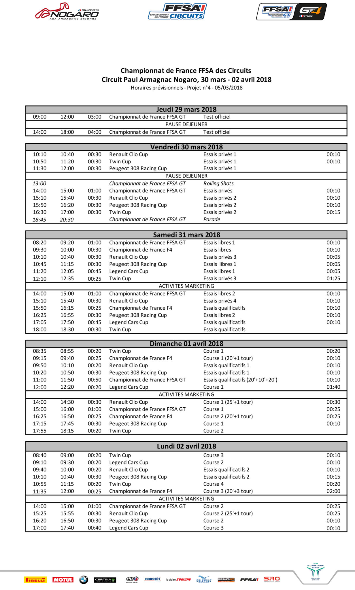 Horaires Nogaro FFSA GT projet n°4