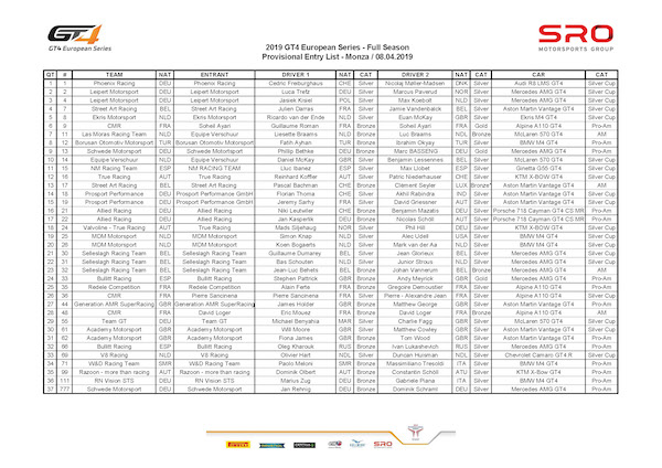 LA LISTE DES ENGAGÉS DU MEETING DE MONZA.